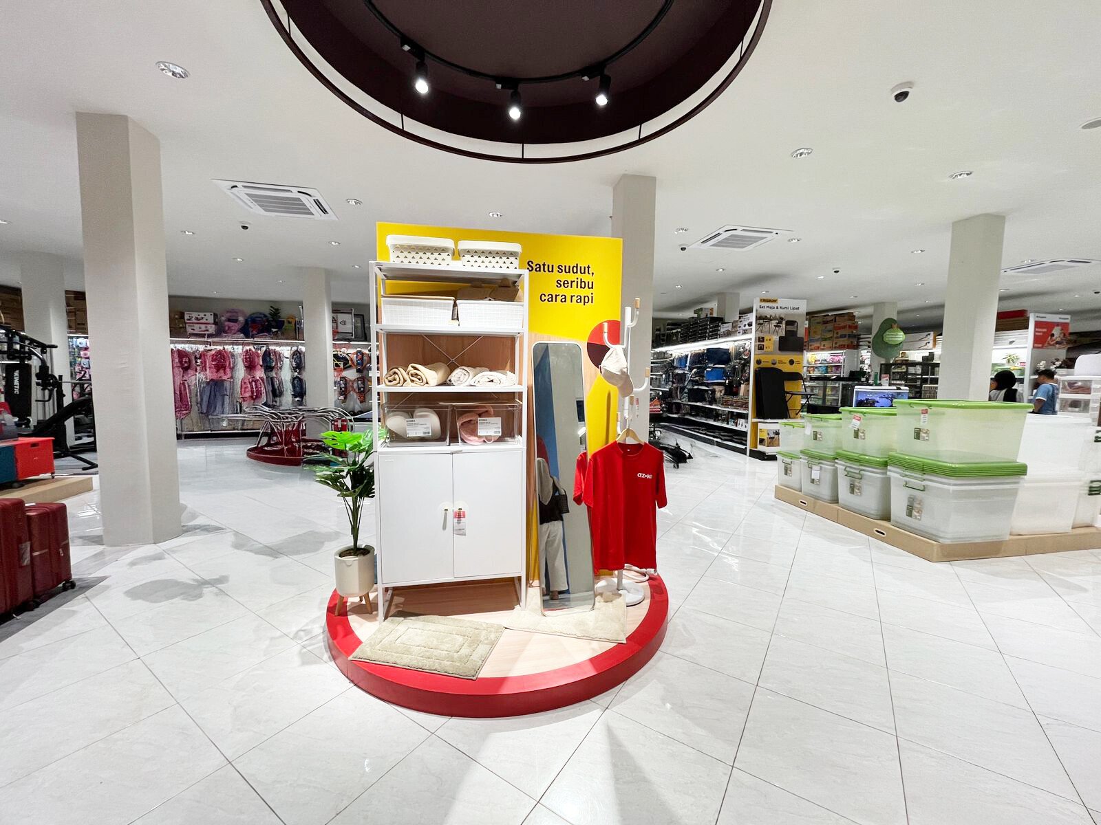 Berbagai kategori produk yang ditawarkan meliputi kebutuhan rumah tangga dari ruang tidur hingga perlengkapan luar ruang. Para pelanggan bisa menemukan beragam item mulai dari alat masak hingga perlengkapan berkebun, menciptakan suasana belanja yang menyenangkan dan beragam.